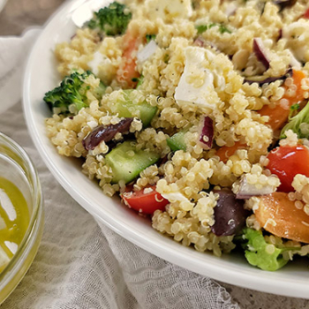 Quinoa-Veggie Salad with Marinated Feta Cheese